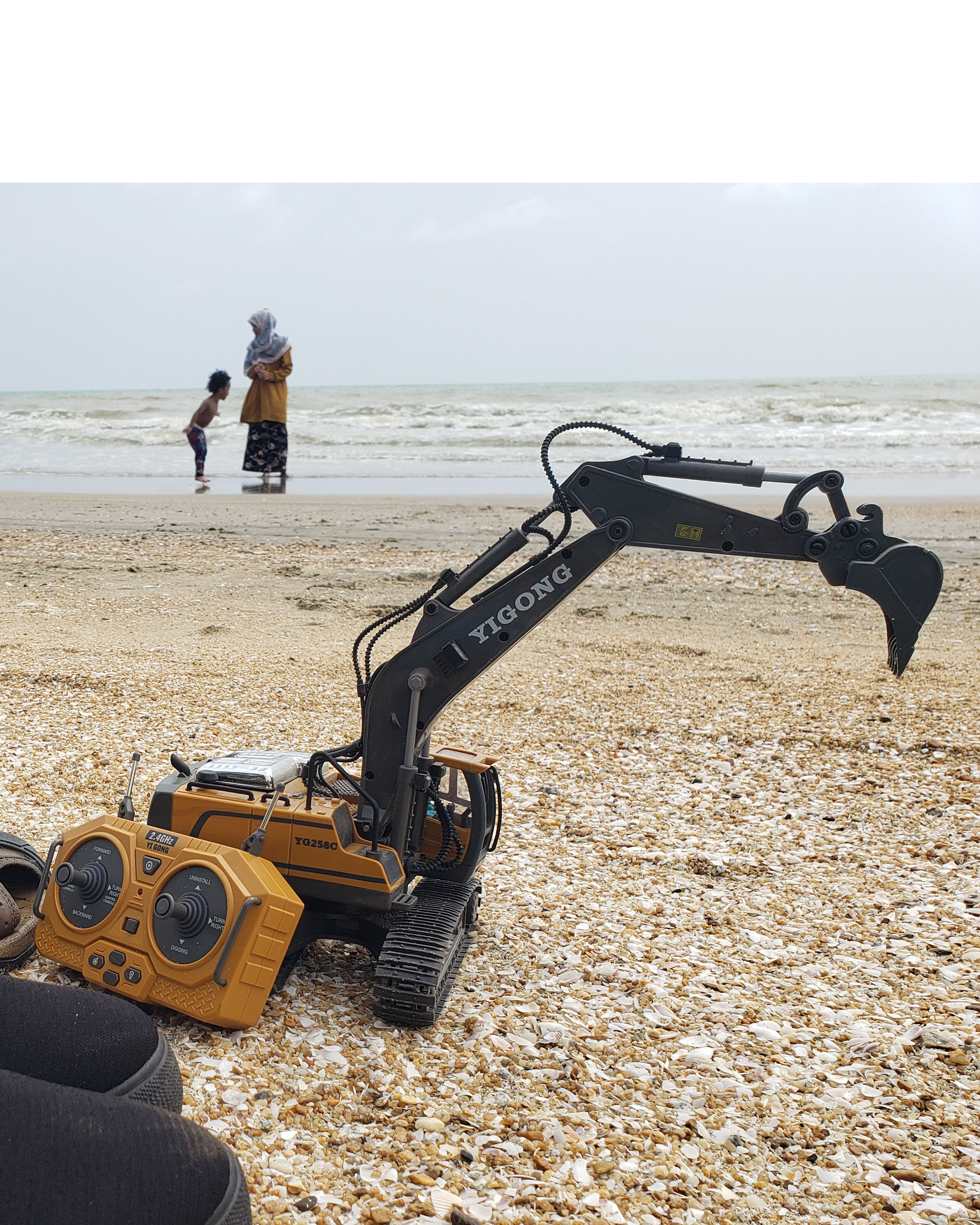 I am a smart little boy who loves playing with sand. My favorite toy is an excavator. Every night before bed, I need to drink my milk first. My mommy always rocks me to sleep. If she can’t get me to sleep, my daddy will come and help. In the end, the three of us fall asleep together.